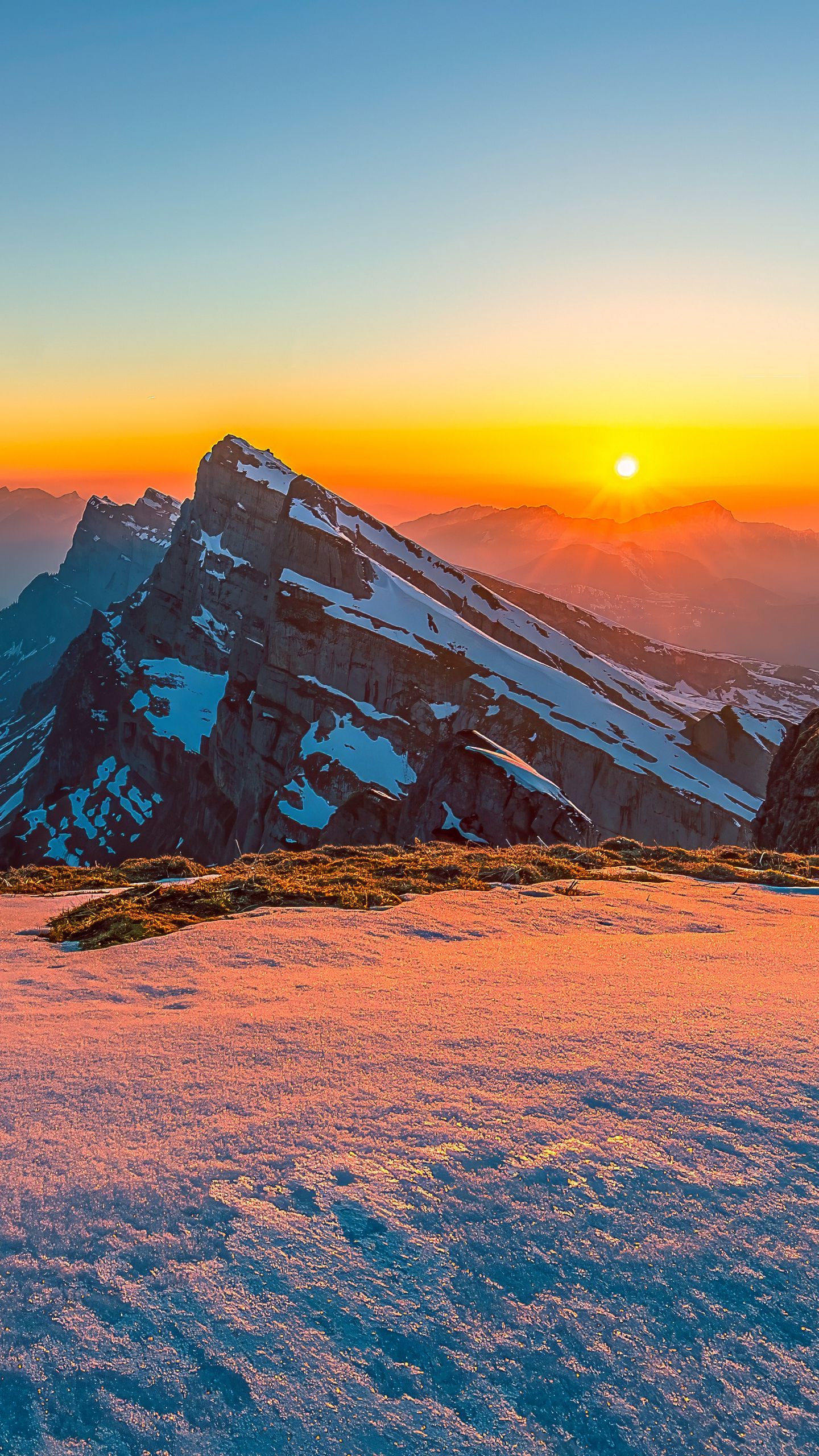 Download 1440x2560 mountains, snow, winter, landscape, sunrise, nature wallpaper, background qhd samsung galaxy s6, s7, edge, note, lg g4