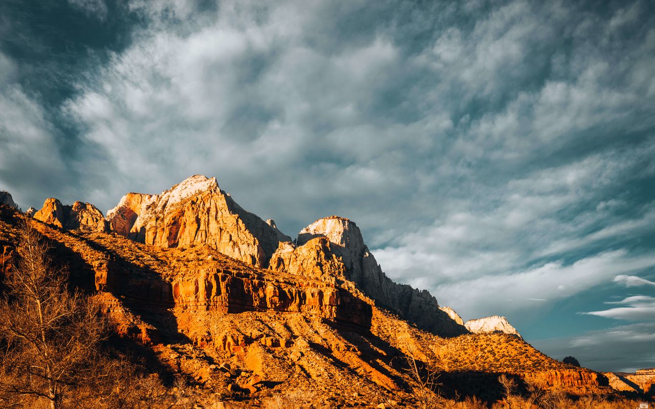 Download 1280x800 mountains, sun, clouds, nature wallpaper, background widescreen 16:10