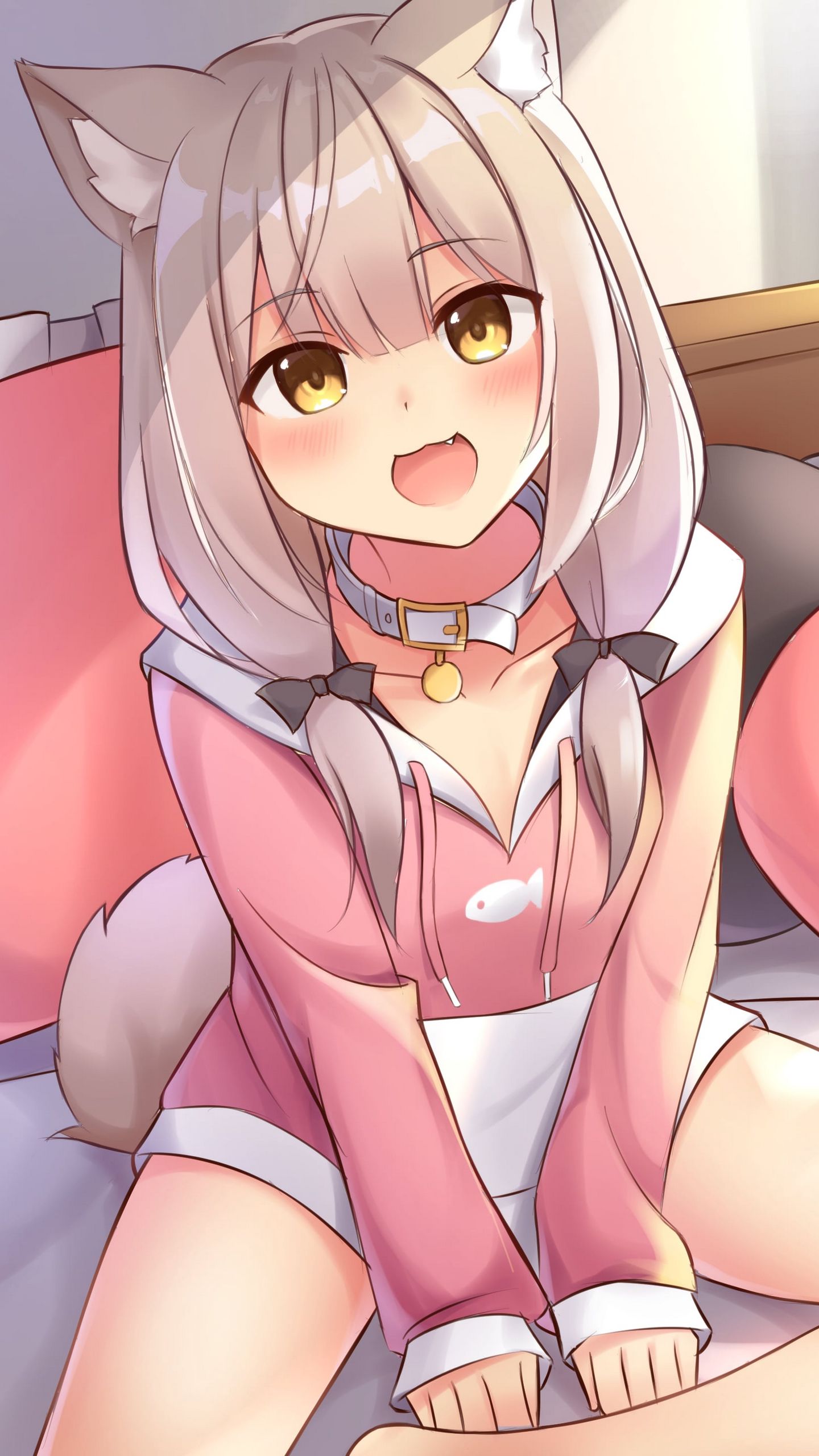 Download 1440x2560 neko, ears, collar, anime, art, cute wallpaper, background qhd samsung galaxy s6, s7, edge, note, lg g4