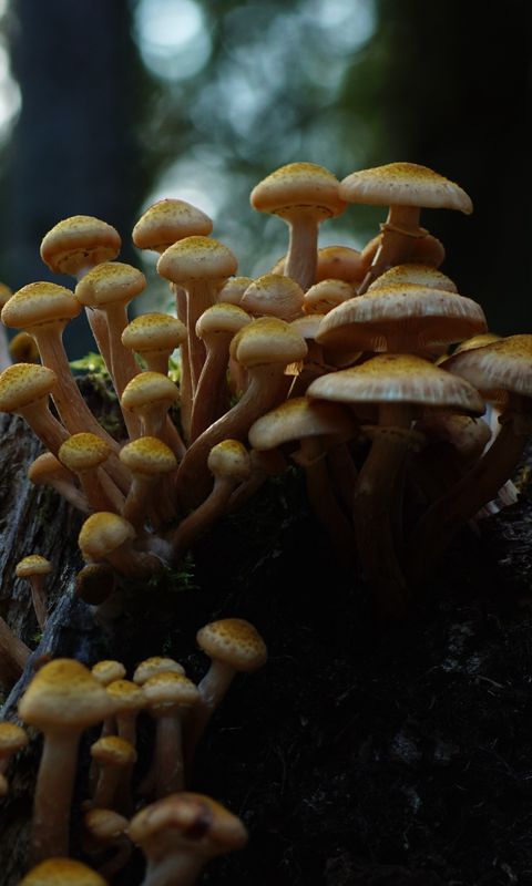 Download 480x800 northern honey fungus, honey fungus, mushrooms, macro, stump, moss, nature wallpaper, background nokia x, x2, xl, 520, 620, 820, samsung galaxy star, ace, asus zenfone 4
