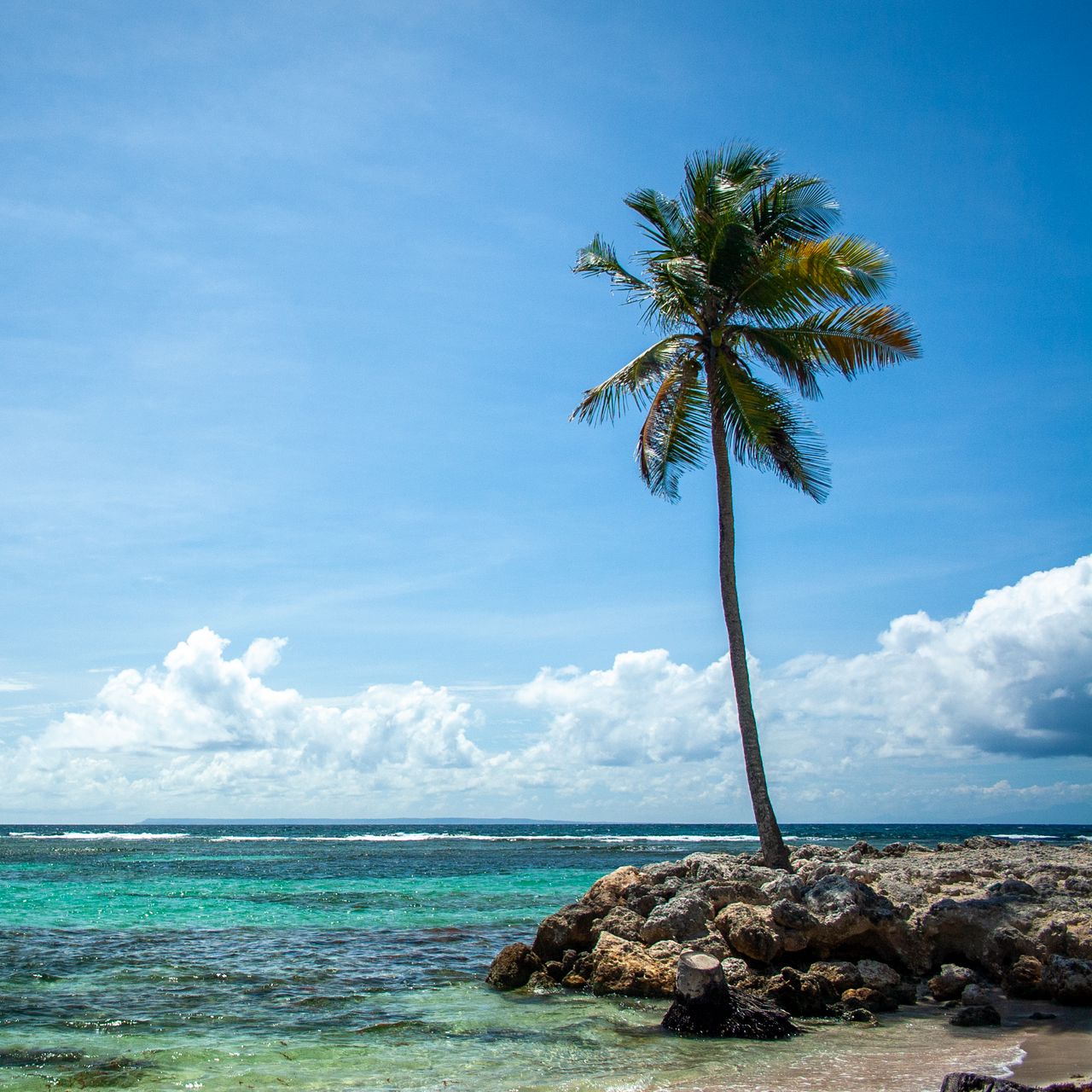 Download 1280x1280 palm tree, island, sea, summer, tropics wallpaper, background ipad, ipad 2, ipad mini for parallax