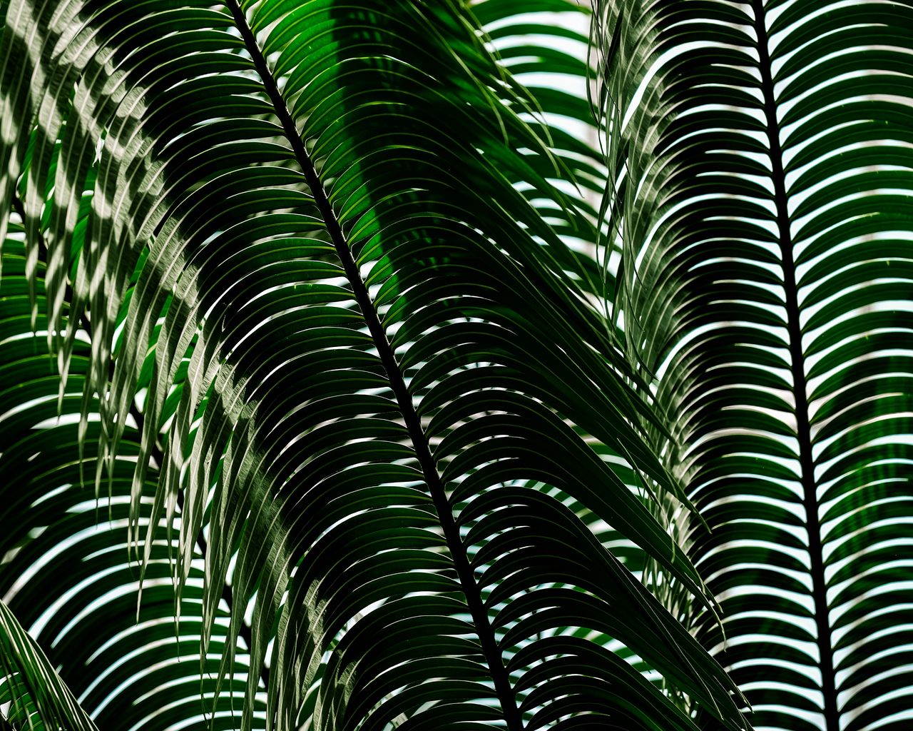 Download 1280x1024 palm tree, leaves, shadows, plant, nature wallpaper, background standard 5:4