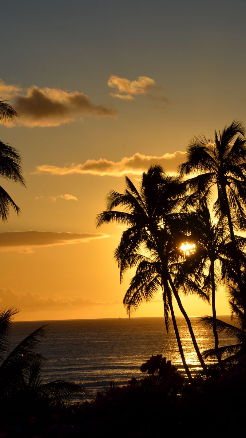 Download 800x1420 palm trees, ocean, sunset, dusk, dark wallpaper, background iphone se/5s/5c/5 for parallax