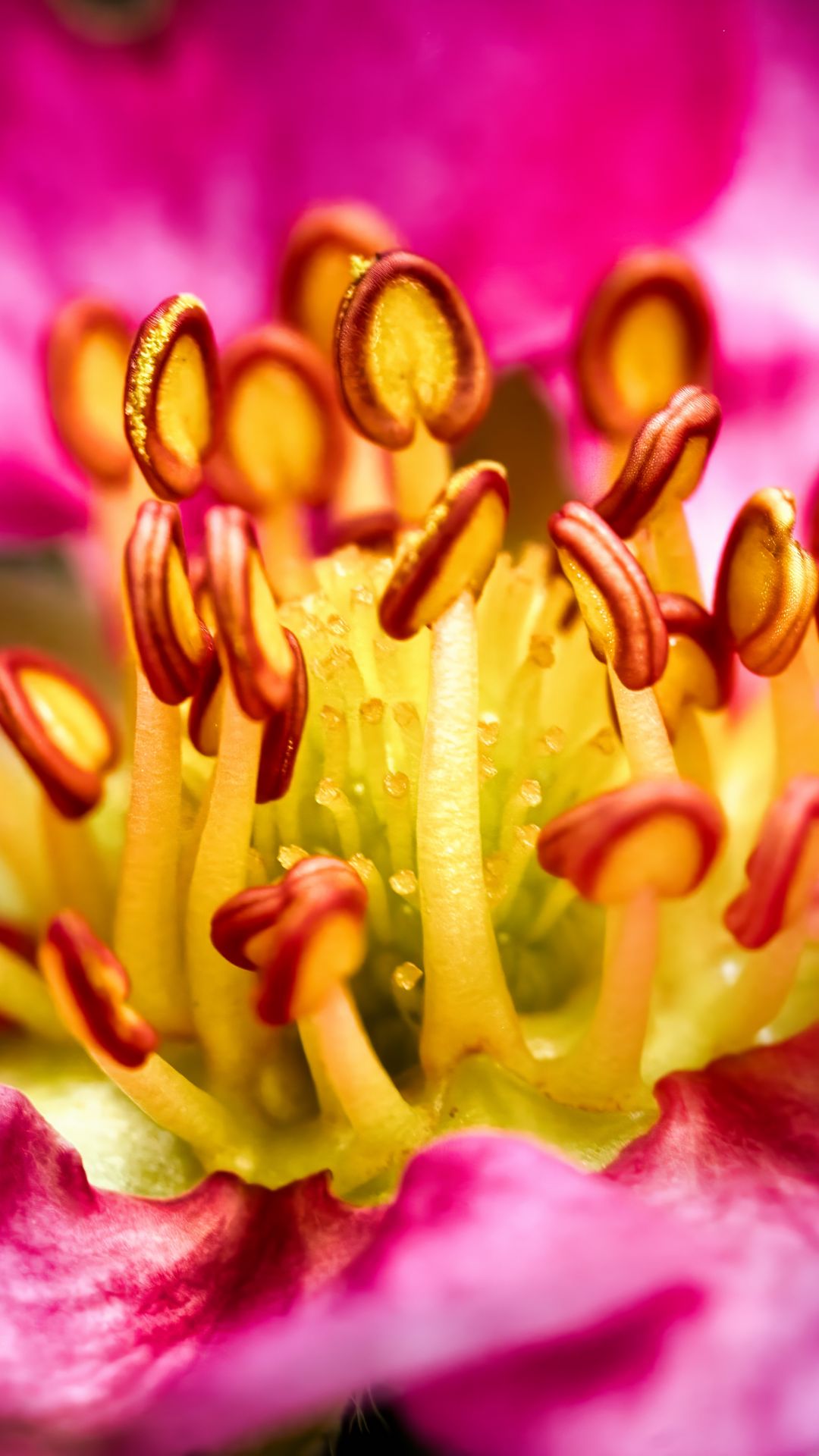 Download 1080x1920 petals, pollen, macro, flower, pink, blur wallpaper, background samsung galaxy s4, s5, note, sony xperia z, z1, z2, z3, htc one, lenovo vibe