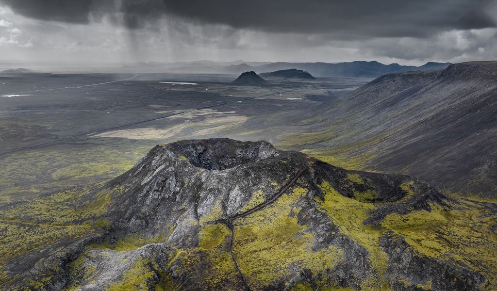 Download 1024x600 plain, hills, valley, crater, nature wallpaper, background netbook, tablet