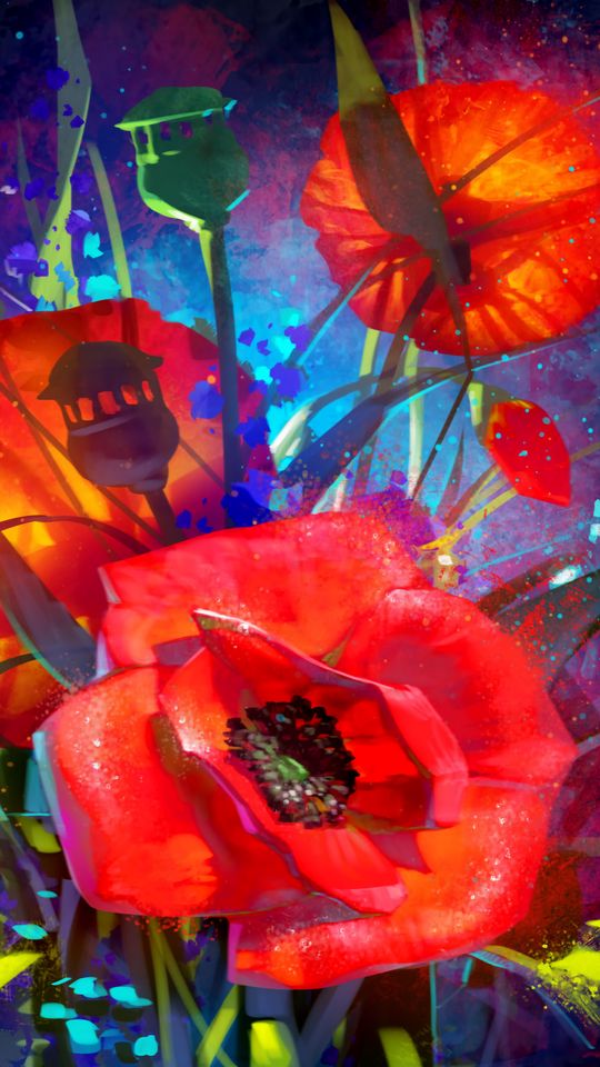 Download 540x960 poppies, art, flowers, bouquet, red wallpaper, background samsung galaxy s4 mini, microsoft lumia 535, philips xenium, lg l90, htc sensation