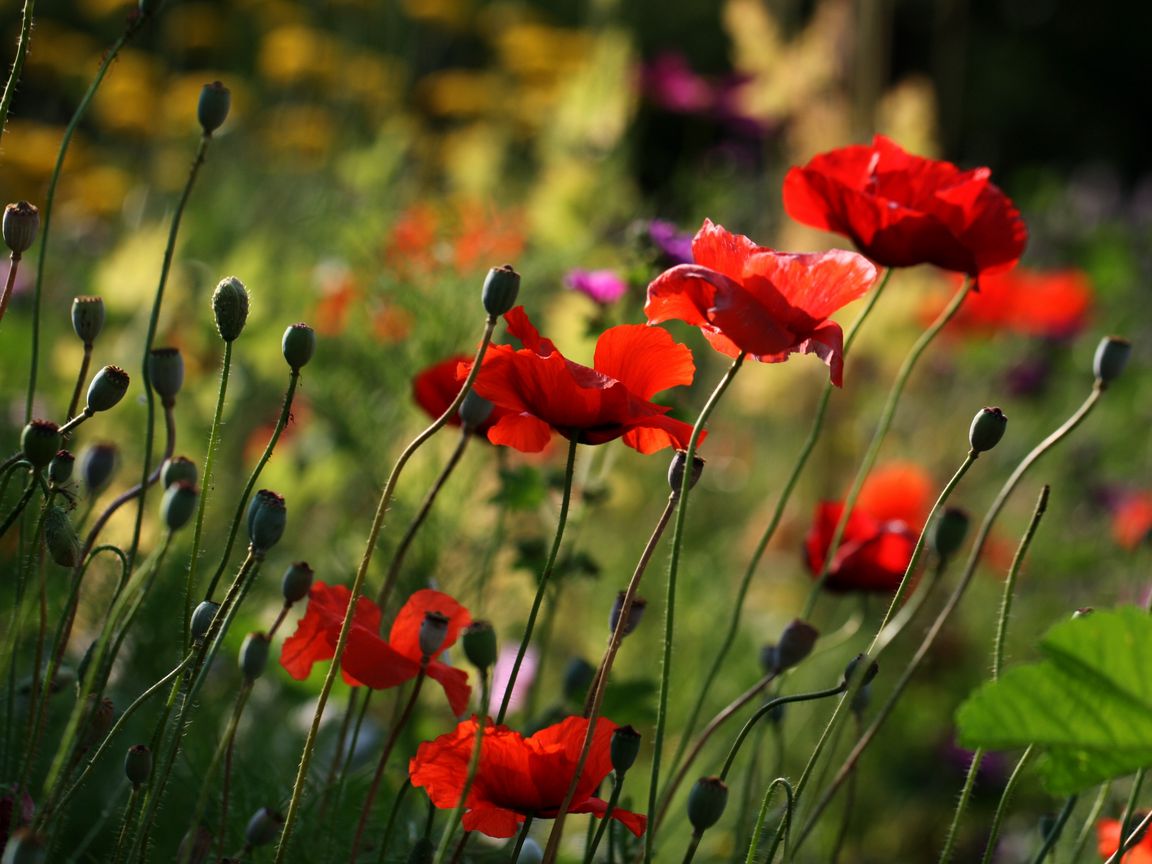 Download 1152x864 poppies, flowers, plant, field, macro wallpaper, background standard 4:3