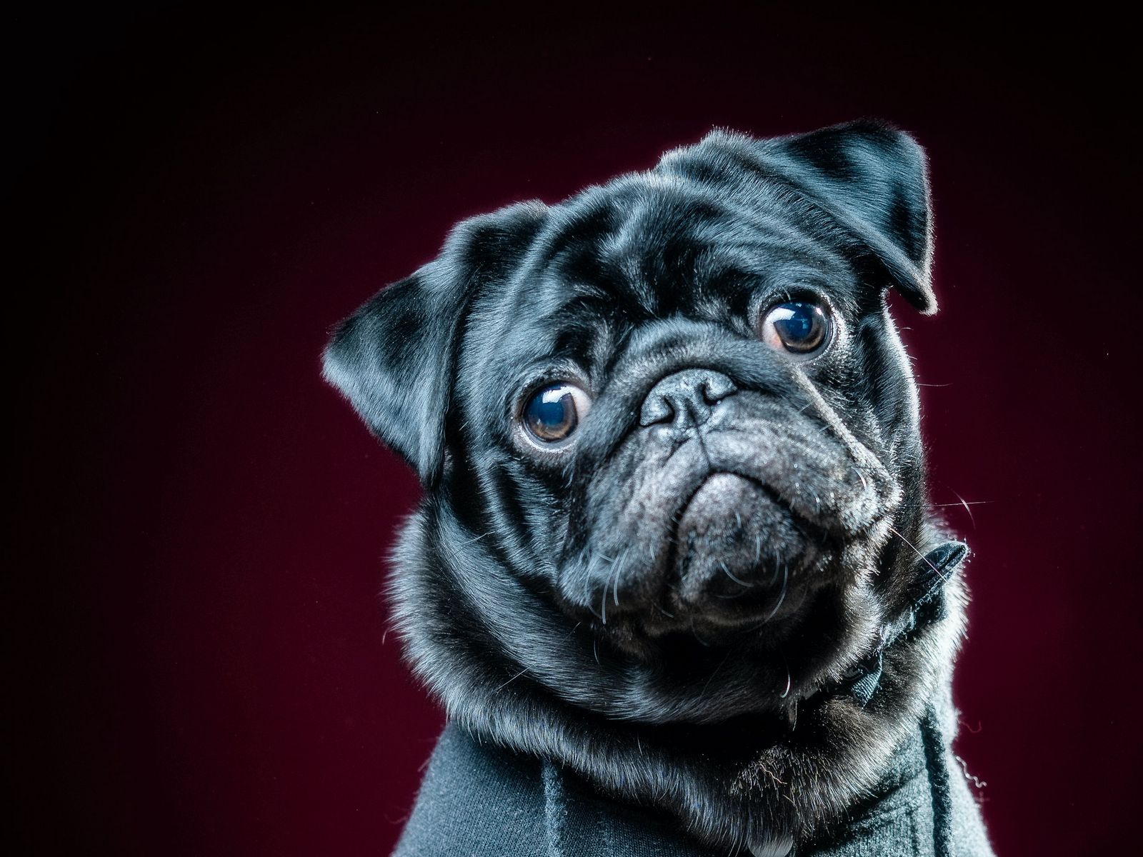 Download 1600x1200 pug, dog, pet, glance, black wallpaper, background standard 4:3