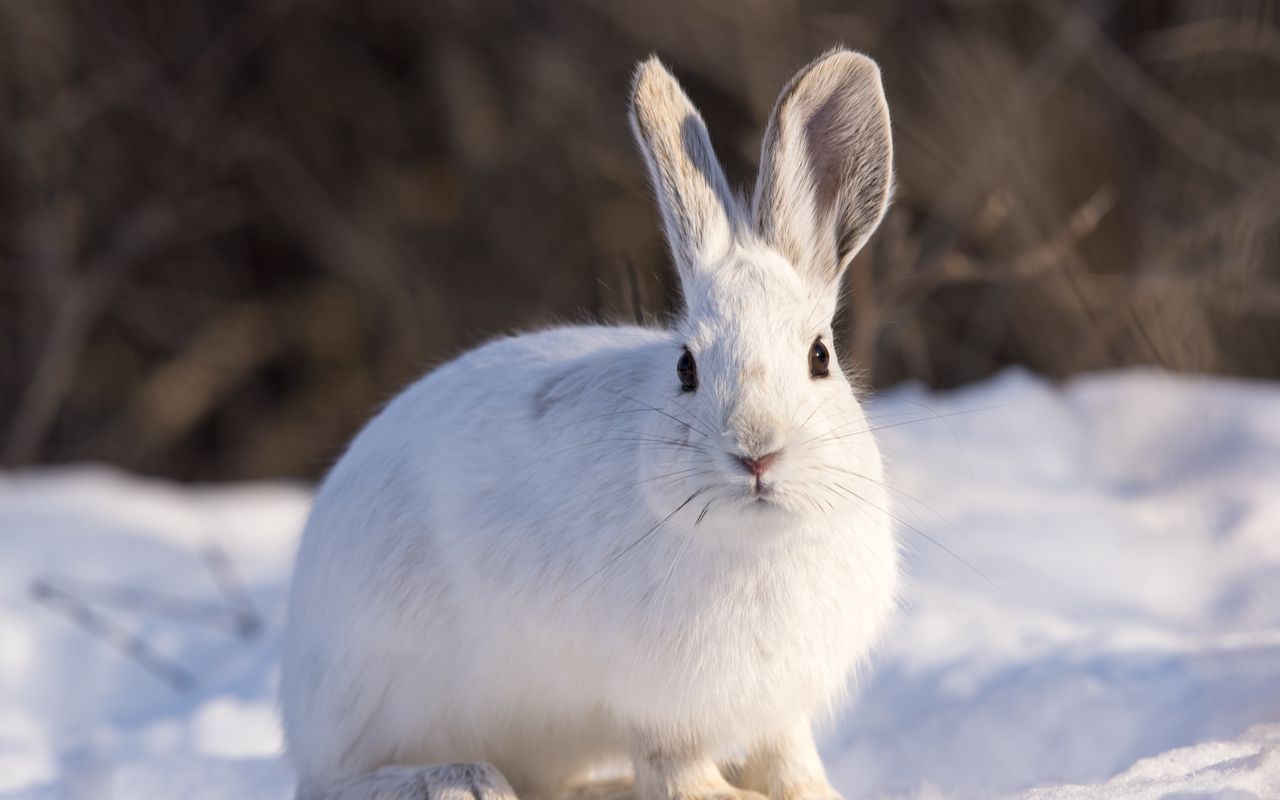 Download 1280x800 rabbit, animal, white, snow, winter wallpaper, background widescreen 16:10