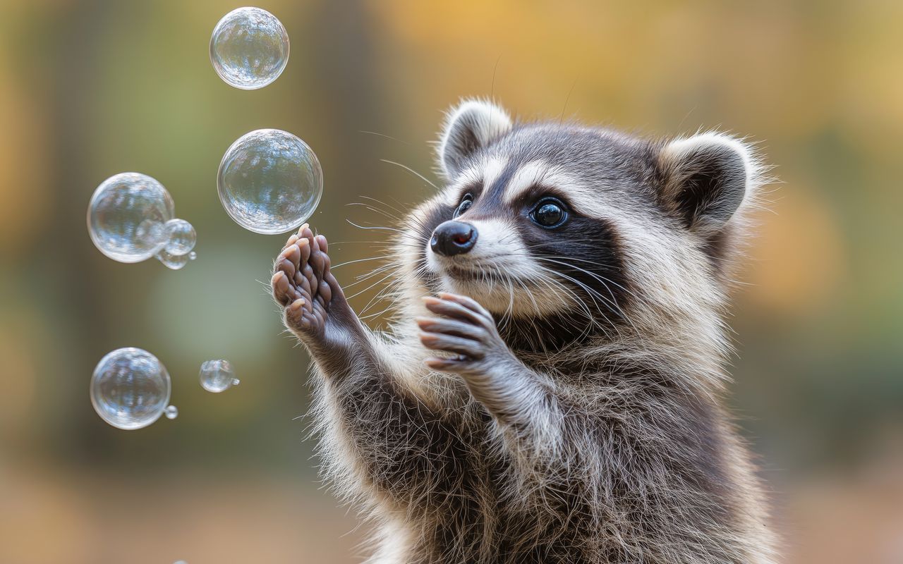Download 1280x800 raccoon, animal, bubbles, cute wallpaper, background widescreen 16:10