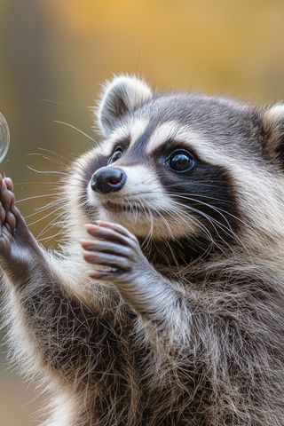 Download 320x480 raccoon, animal, bubbles, cute wallpaper, background samsung galaxy ace gt-s5830, sony xperia e, miro, htc wildfire s, c, lg optimus