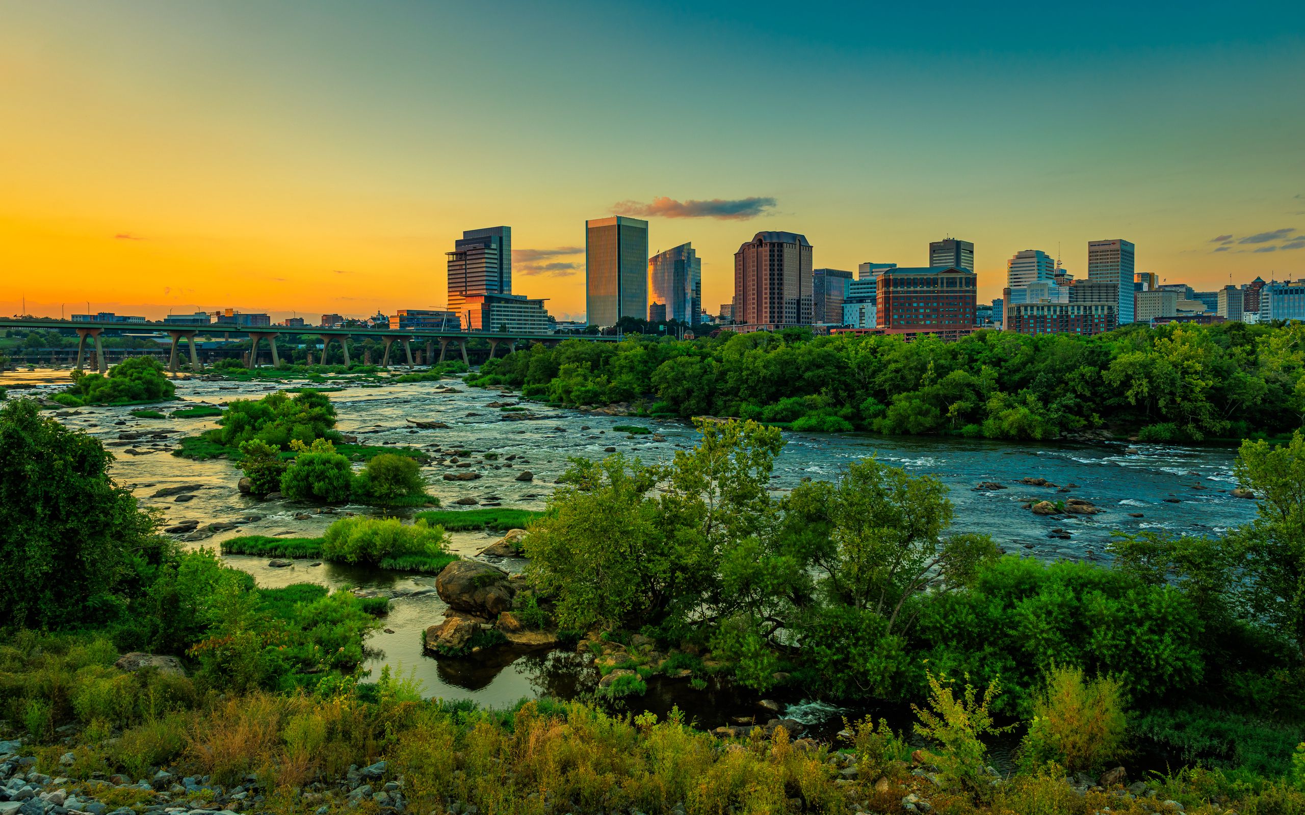 Download 2560x1600 river, bridge, trees, buildings, city, nature wallpaper, background widescreen 16:10
