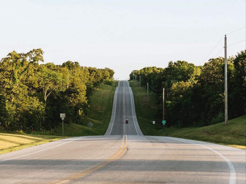 Download 800x600 road, signs, hills, rise, trees wallpaper, background pocket pc, pda