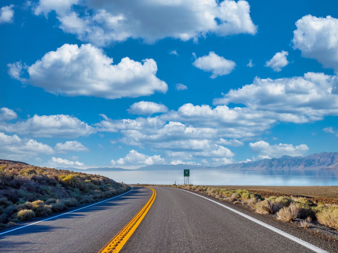 Download 1152x864 road, turn, sea, landscape, nature wallpaper, background standard 4:3