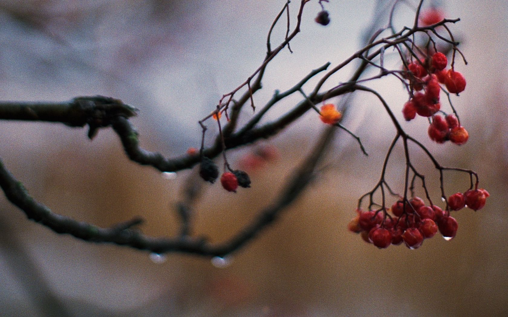 Download 1680x1050 rowan, berries, branch, drops, autumn, macro wallpaper, background widescreen 16:10