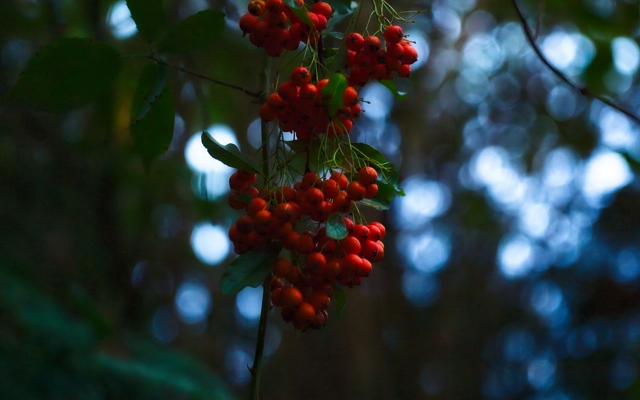 Download 1280x800 rowan, berries, branches, blur wallpaper, background widescreen 16:10