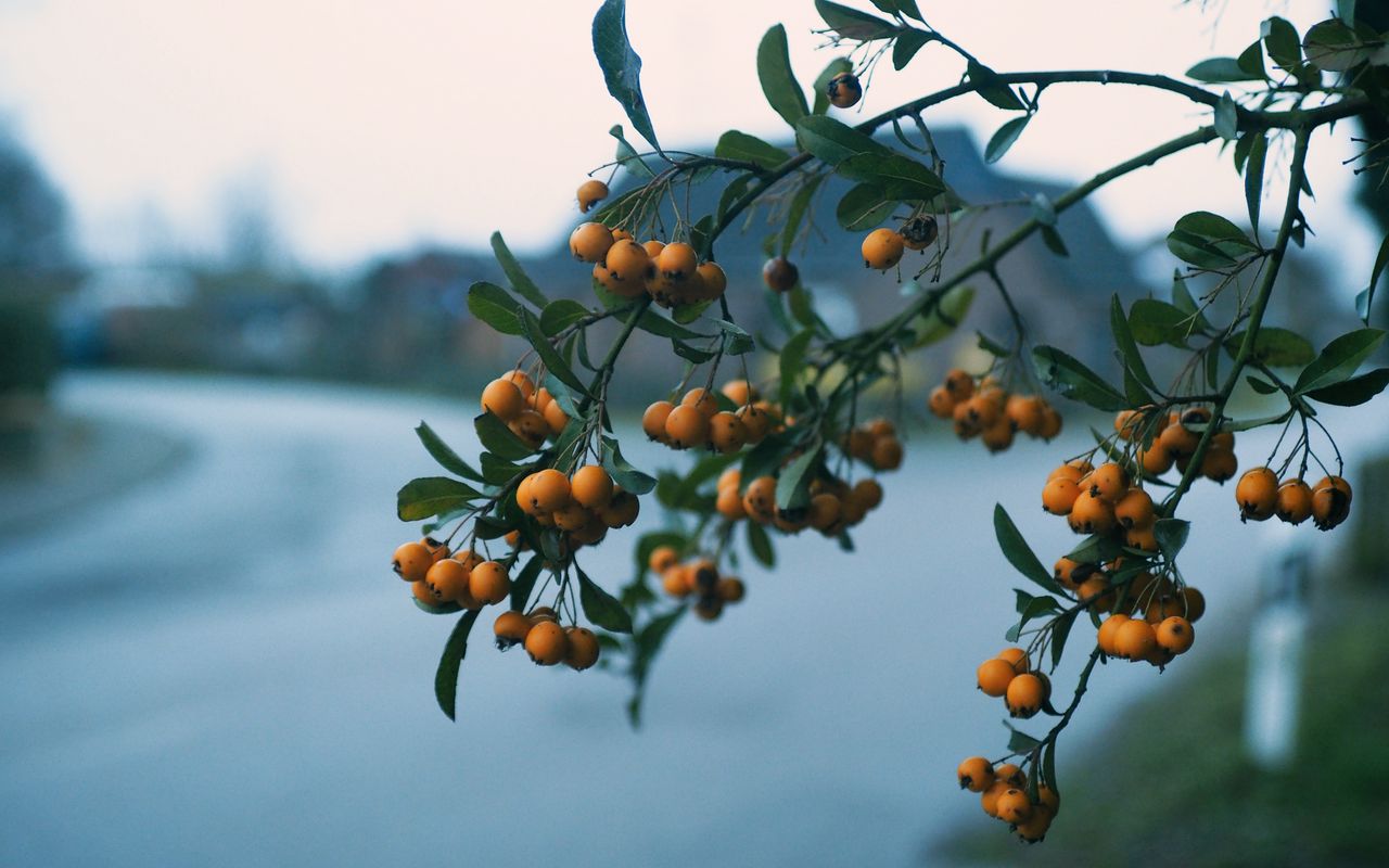Download 1280x800 rowan, branch, berries, blur wallpaper, background widescreen 16:10