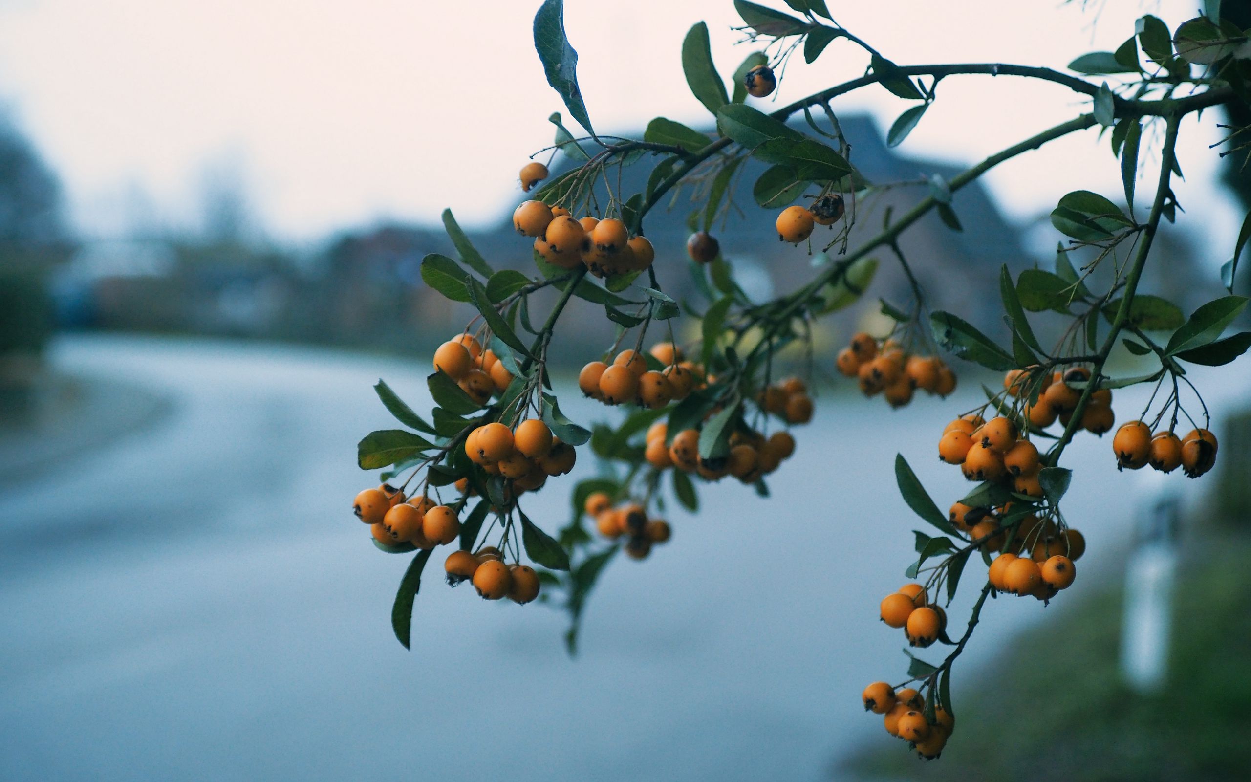 Download 2560x1600 rowan, branch, berries, blur wallpaper, background widescreen 16:10