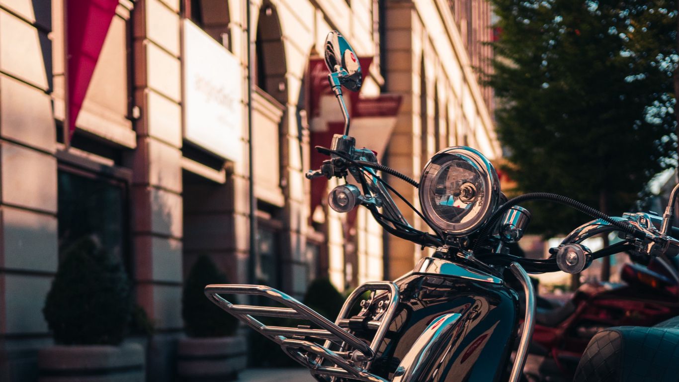 Download 1366x768 scooter, black, headlight, street wallpaper, background tablet, laptop