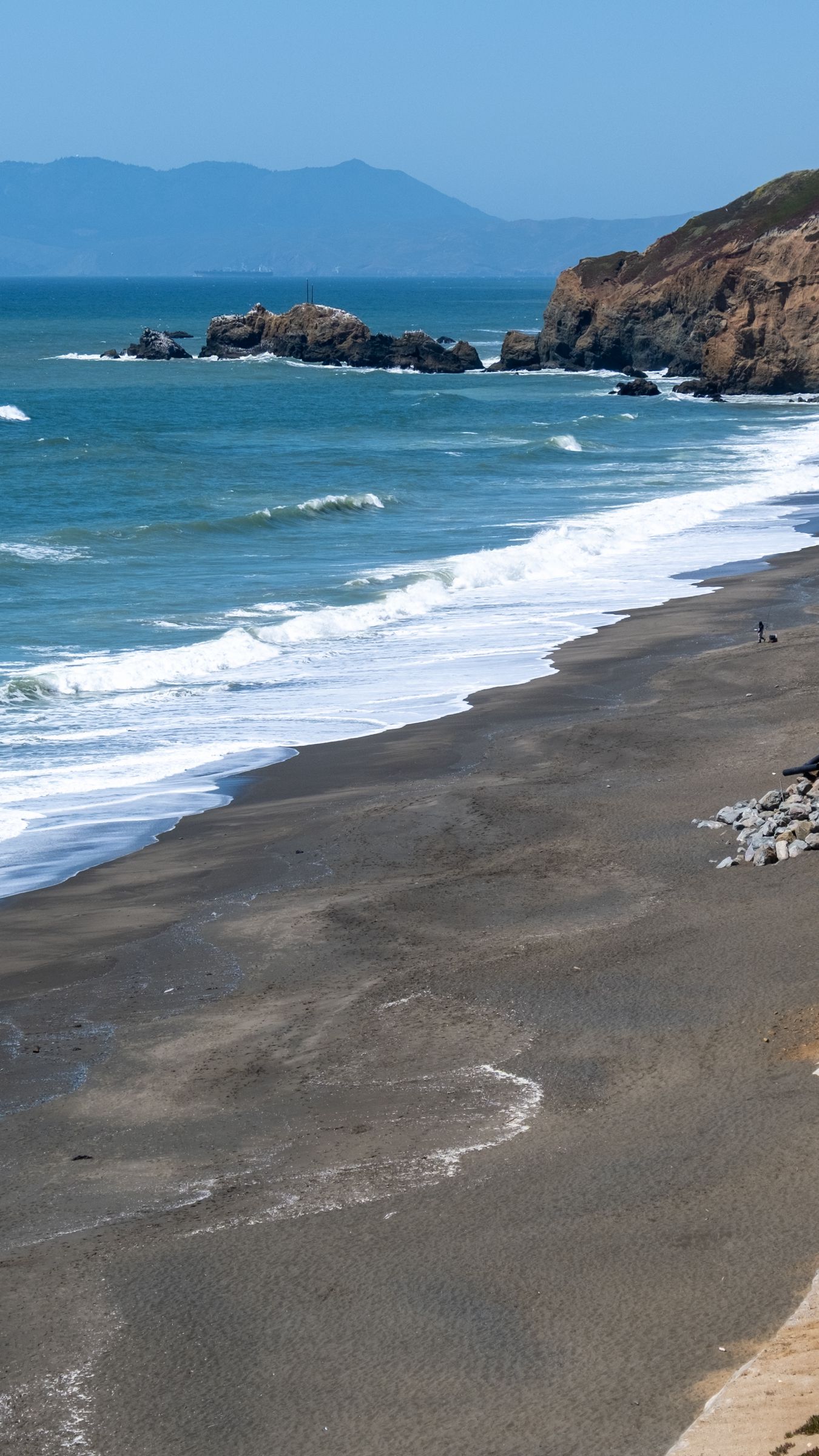 Download 1350x2400 sea, waves, mountain, beach, landscape wallpaper, background iphone 8+/7+/6s+/6+ for parallax