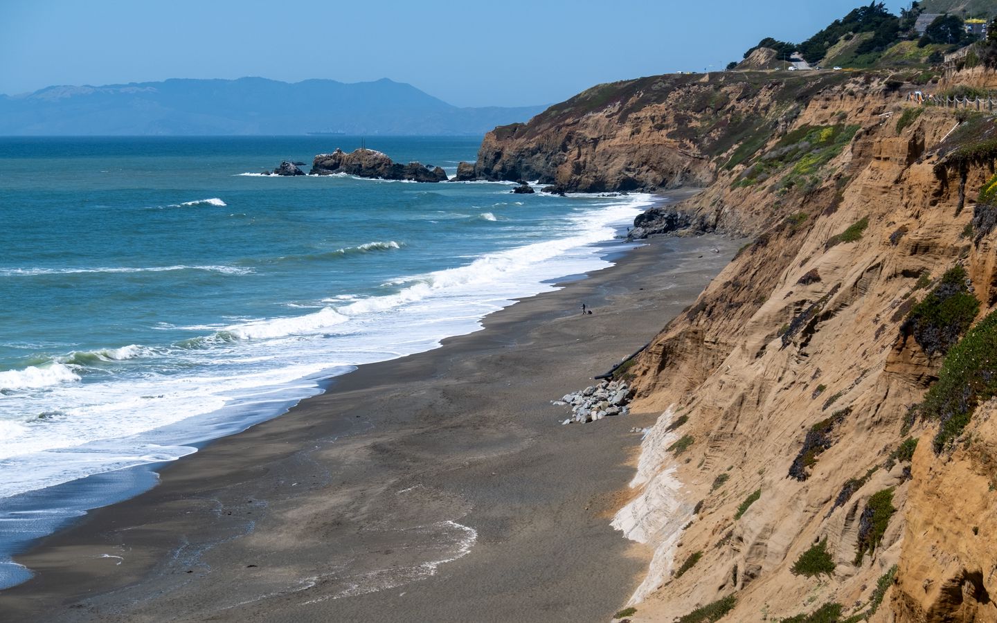 Download 1440x900 sea, waves, mountain, beach, landscape wallpaper, background widescreen 16:10