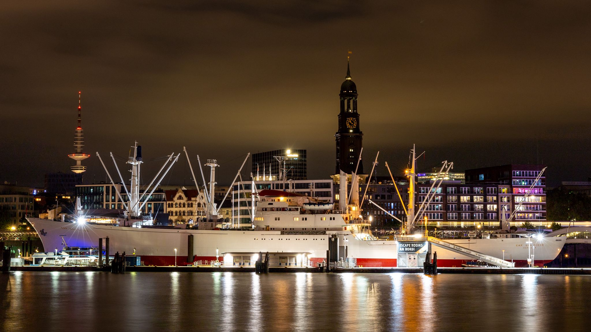 Download 2048x1152 ships, lights, tower, chapel, dark wallpaper, background ultrawide monitor