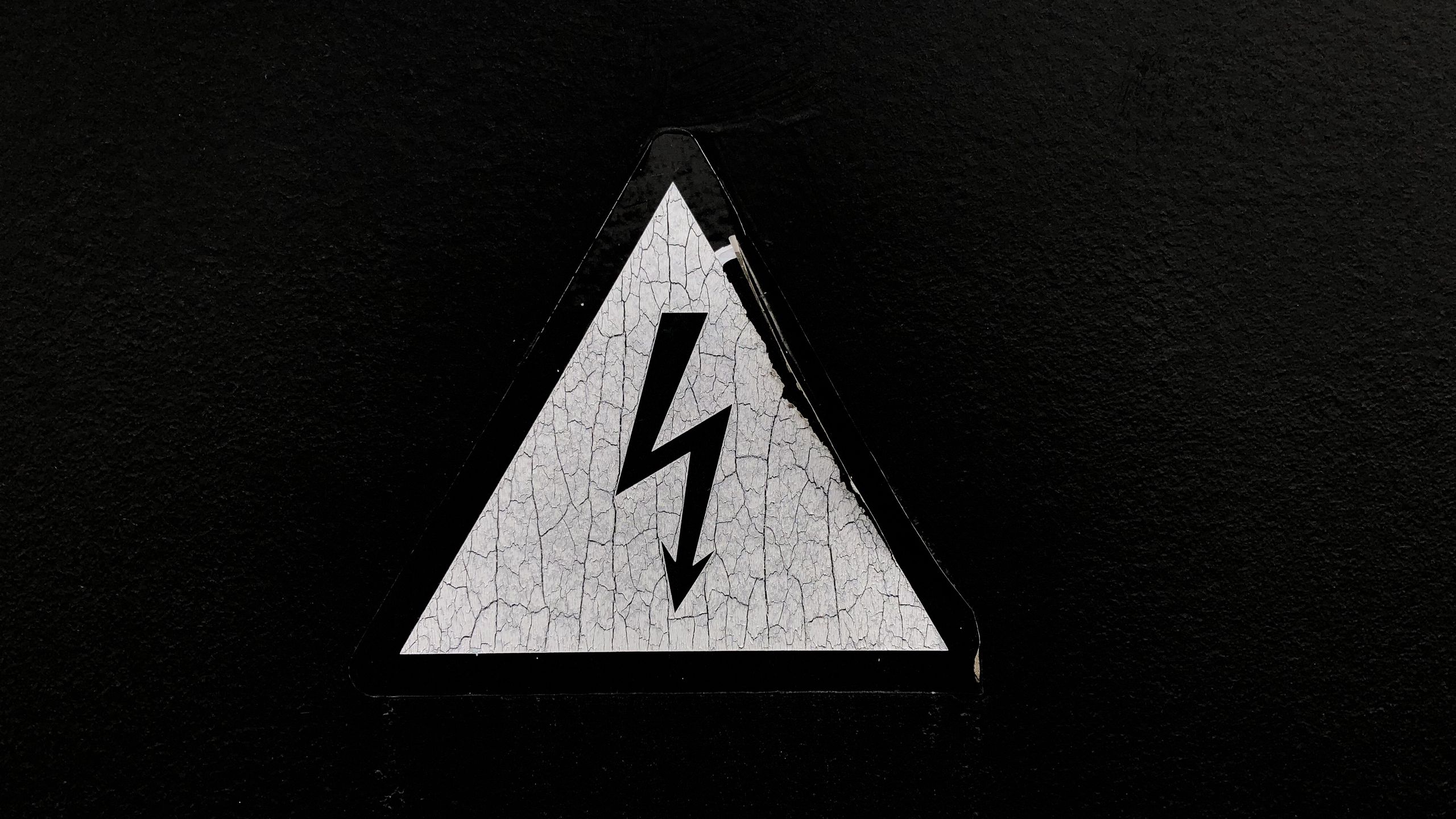 Download 2560x1440 sign, warning, danger, electricity, black and white wallpaper, background widescreen 16:9