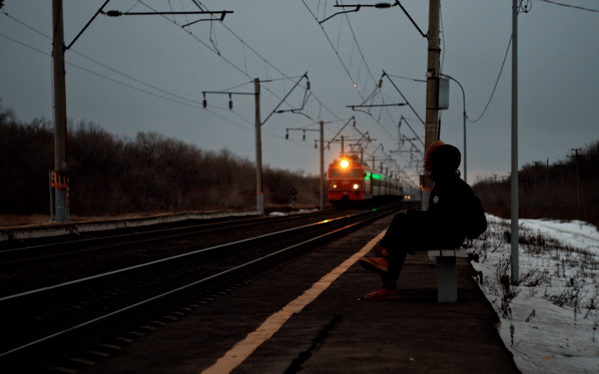 Download 1920x1200 silhouette, alone, sad, train, station wallpaper, background widescreen 16:10