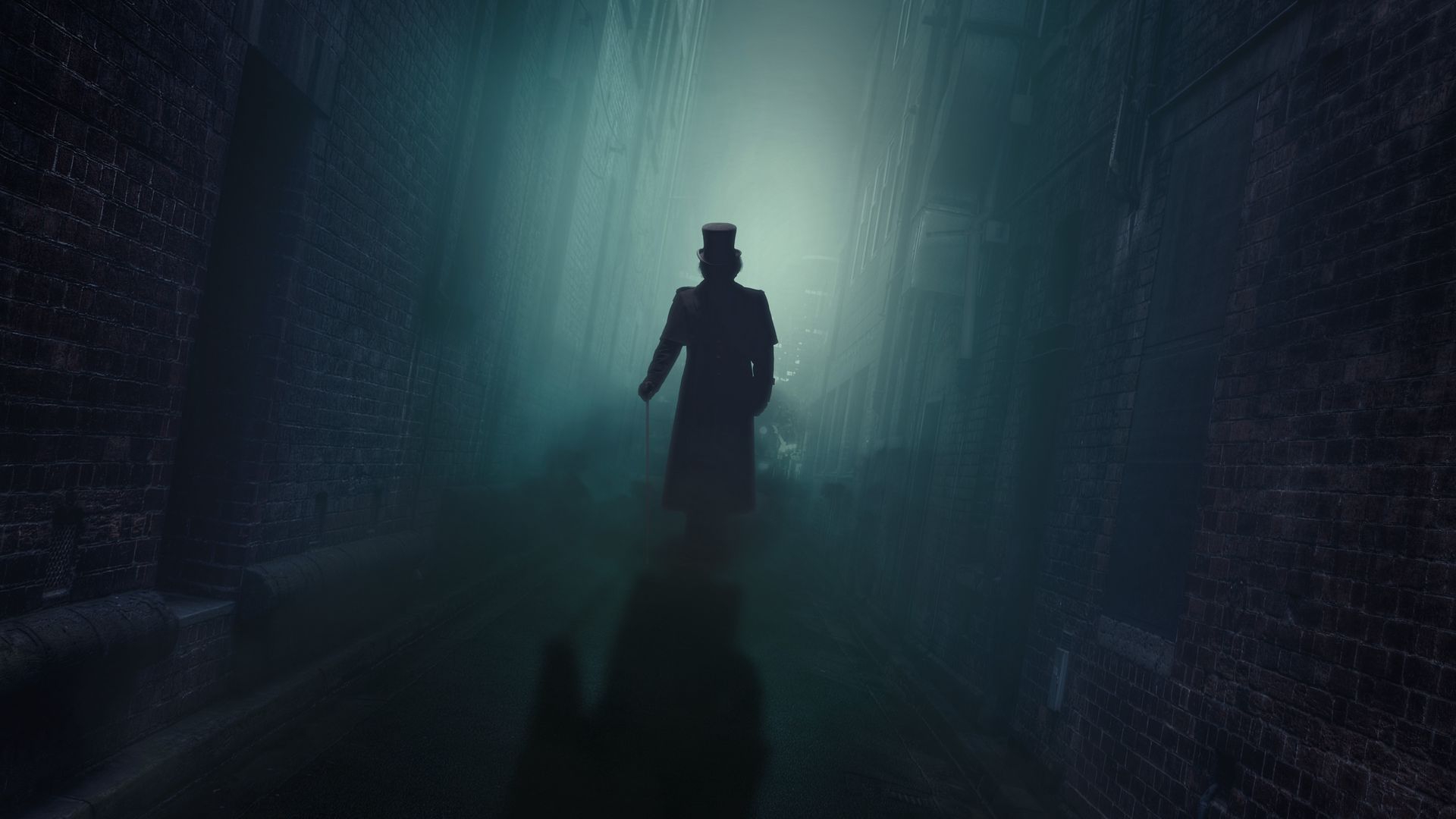 Download 1920x1080 silhouette, lane, night, fog, shadow, hat, cane, walk away wallpaper, background full hd, hdtv, fhd, 1080p