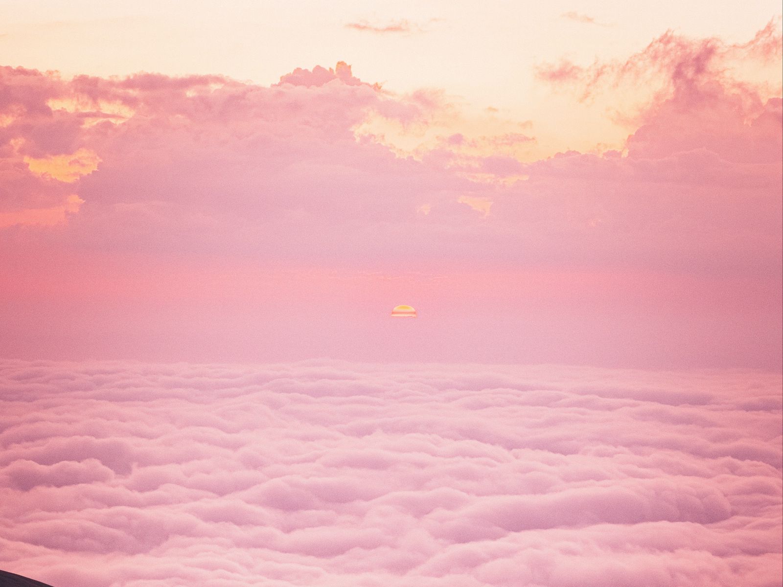 Download 1600x1200 slope, hill, clouds, sunset, pink wallpaper, background standard 4:3