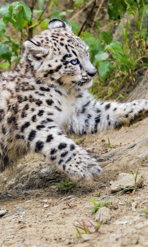 Download 480x800 snow leopard, kitten, animal, movement, slope wallpaper, background nokia x, x2, xl, 520, 620, 820, samsung galaxy star, ace, asus zenfone 4