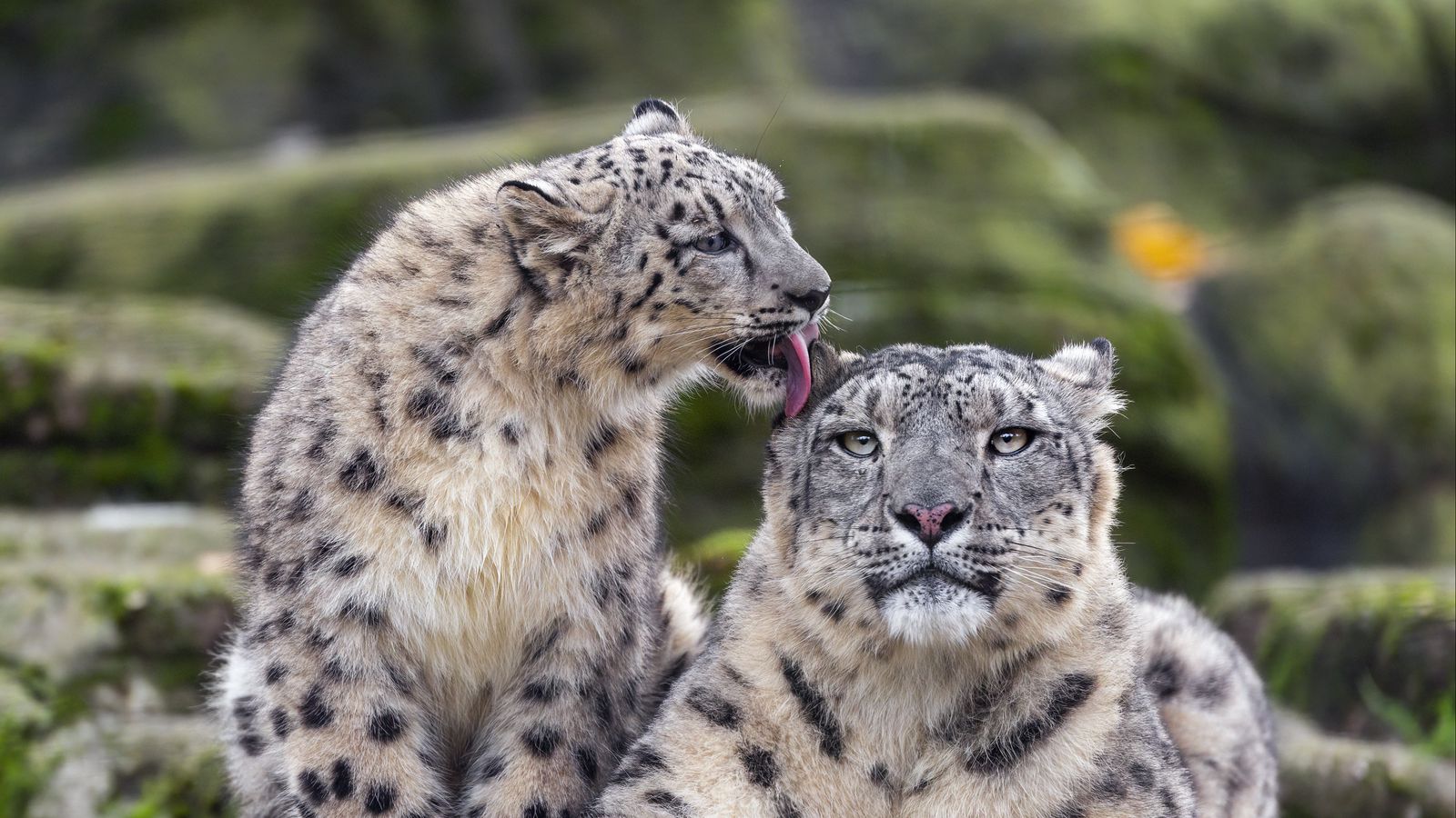 Download 1600x900 snow leopards, big cats, animals, tenderness, wildlife wallpaper, background widescreen 16:9