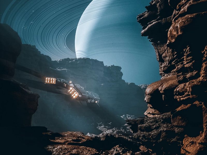 Download 800x600 spaceship, rocks, jupiter, planet, illusion wallpaper, background pocket pc, pda