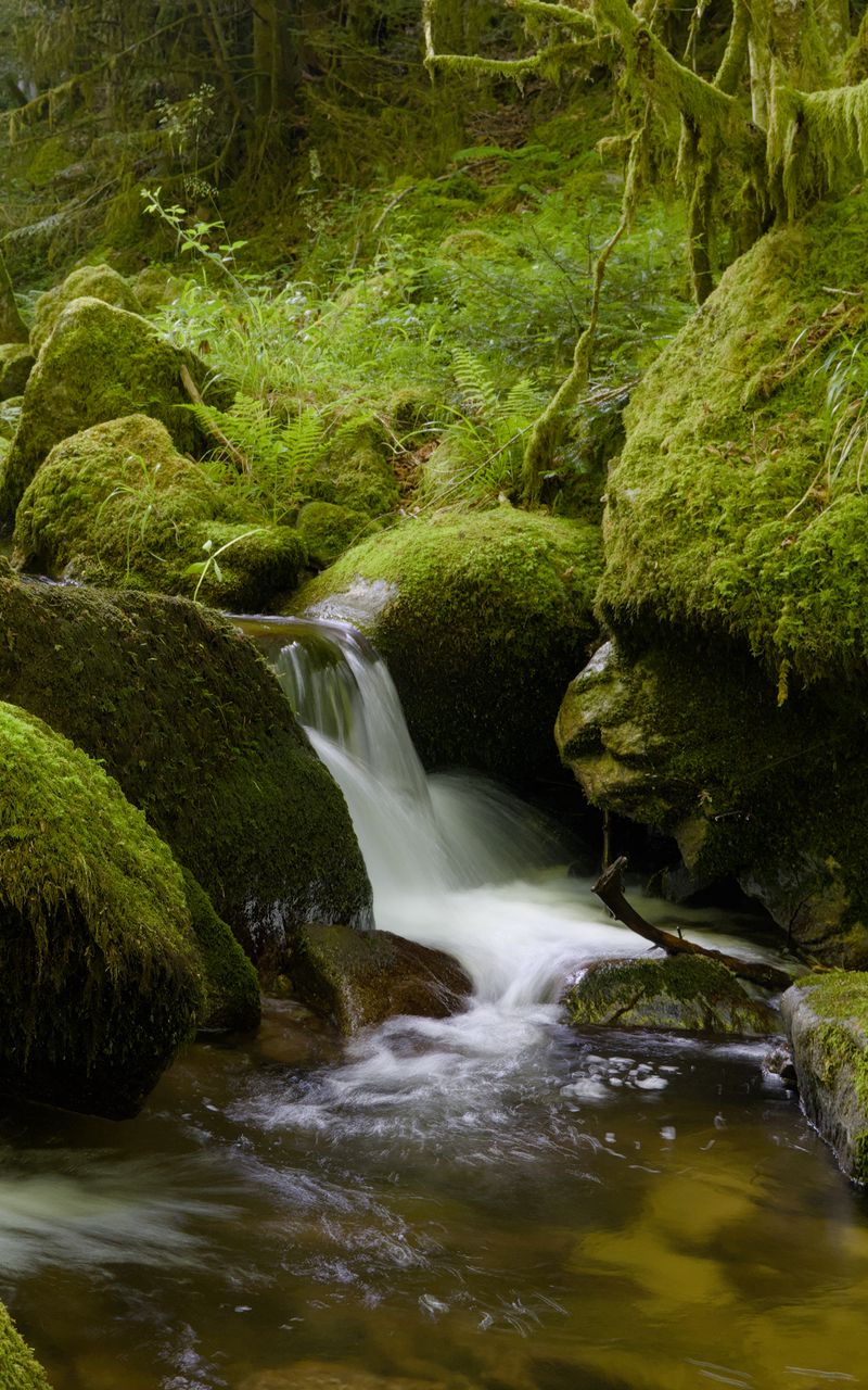 Download 800x1280 stones, moss, greenery, waterfall, river, nature wallpaper, background samsung galaxy note gt-n7000, meizu mx2