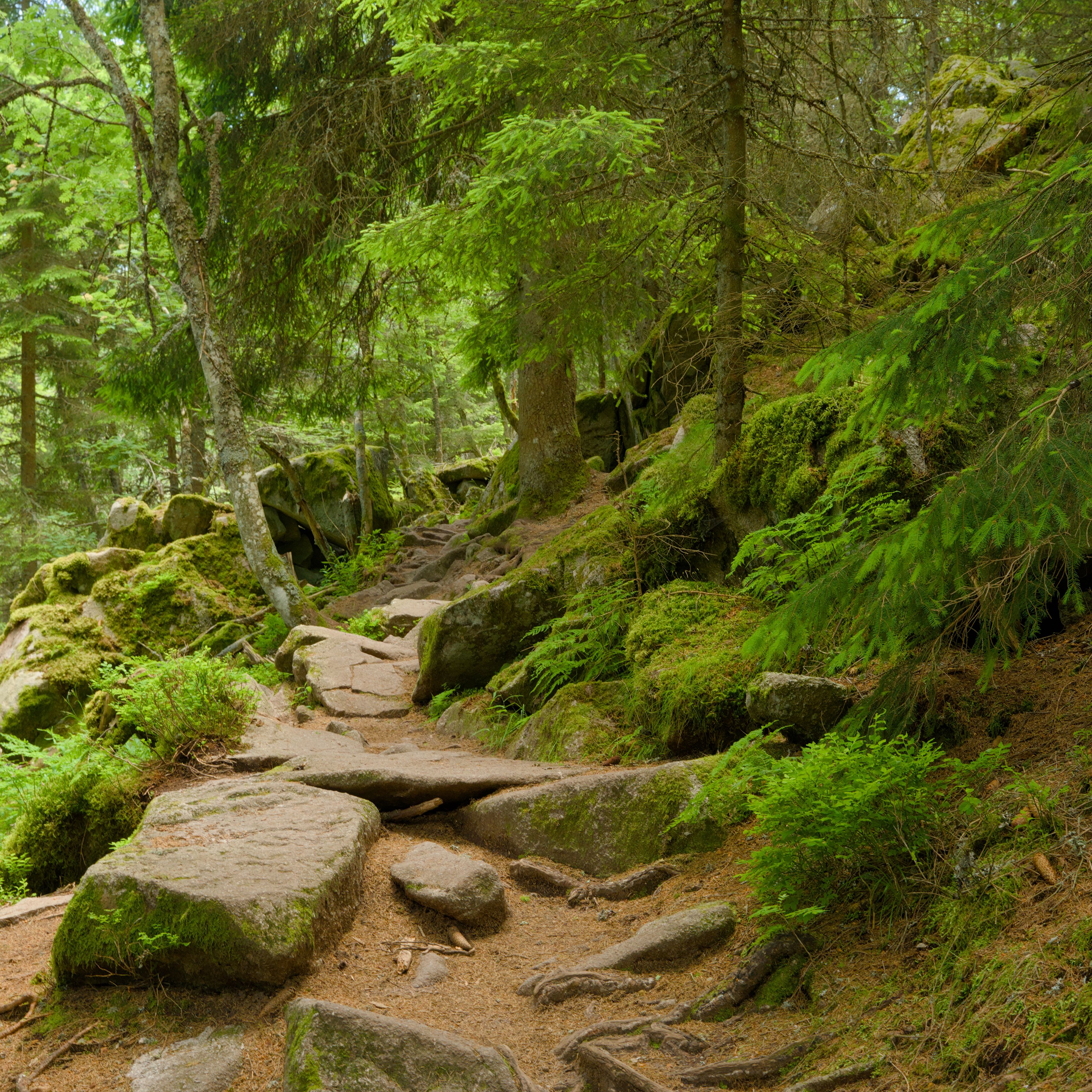 Download 3415x3415 stones, trees, bushes, moss, forest, nature wallpaper, background ipad pro 12.9" retina for parallax