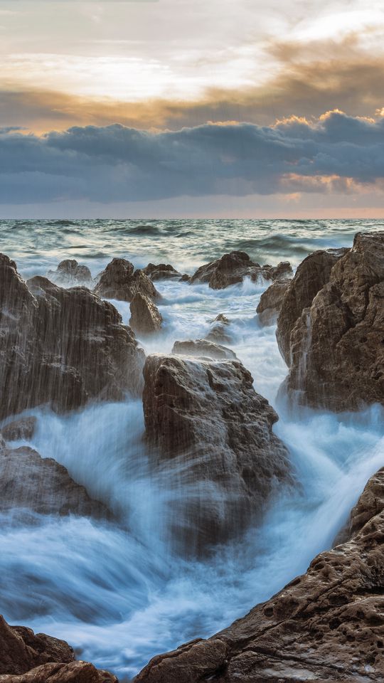 Download 540x960 storm, waves, rocks, water wallpaper, background samsung galaxy s4 mini, microsoft lumia 535, philips xenium, lg l90, htc sensation