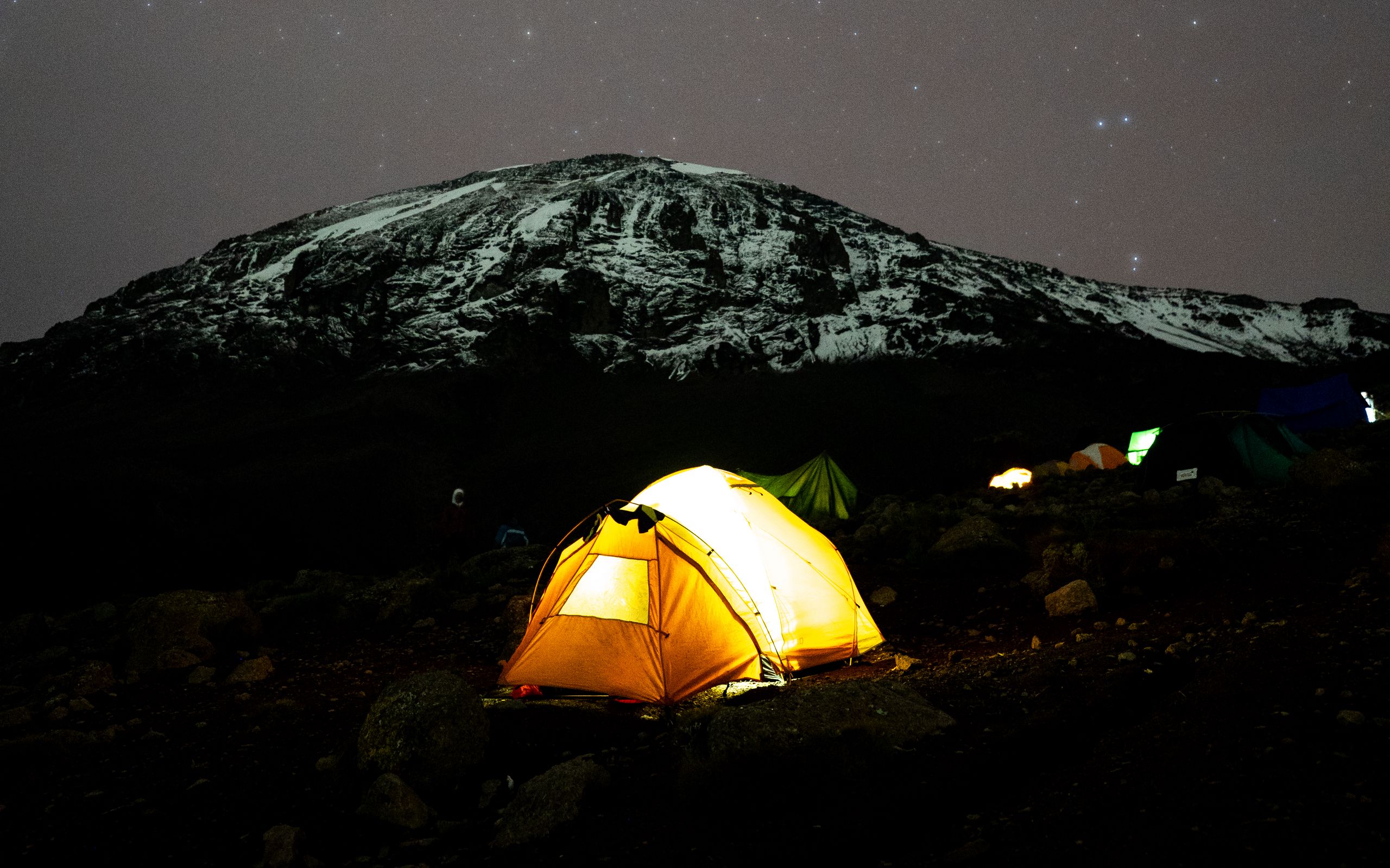 Download 2560x1600 tent, glow, mountain, starry sky, dark wallpaper, background widescreen 16:10