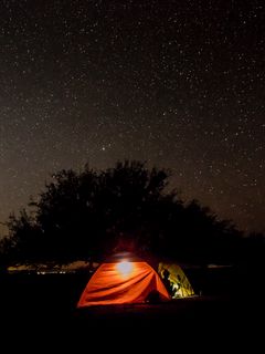 Download 240x320 tent, night, starry sky wallpaper, background old mobile, cell phone, smartphone