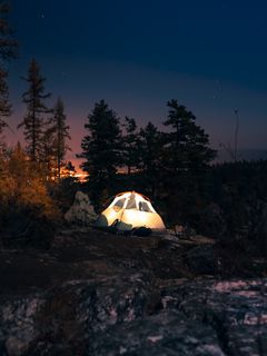 Download 240x320 tent, starry sky, night, camping, trees wallpaper, background old mobile, cell phone, smartphone