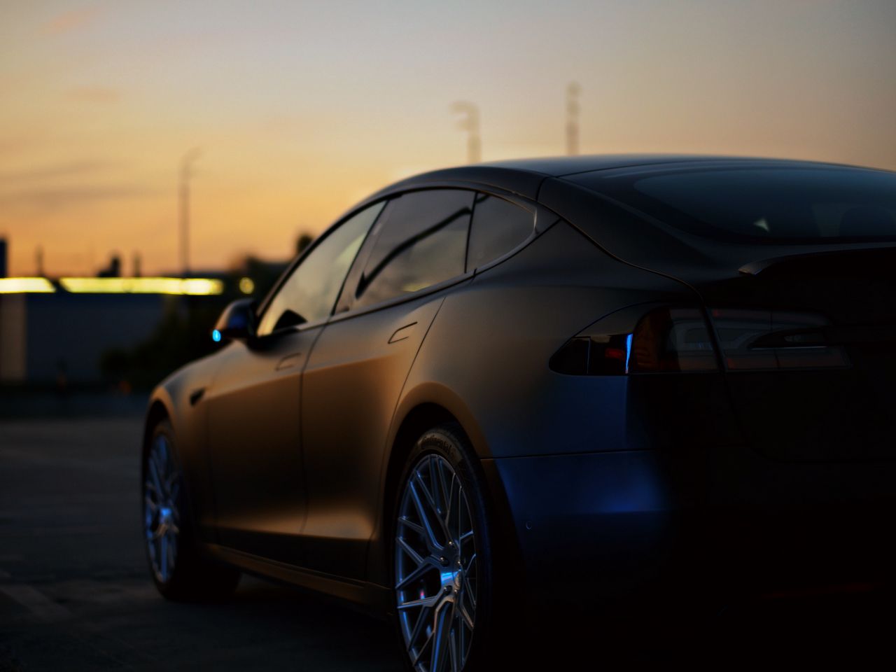 Download 1280x960 tesla, car, black, sunset wallpaper, background standard 4:3