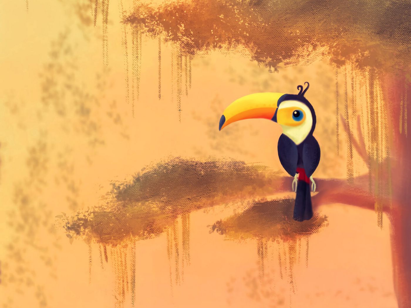 Download 1400x1050 toucan, bird, art, tree, branch wallpaper, background standard 4:3
