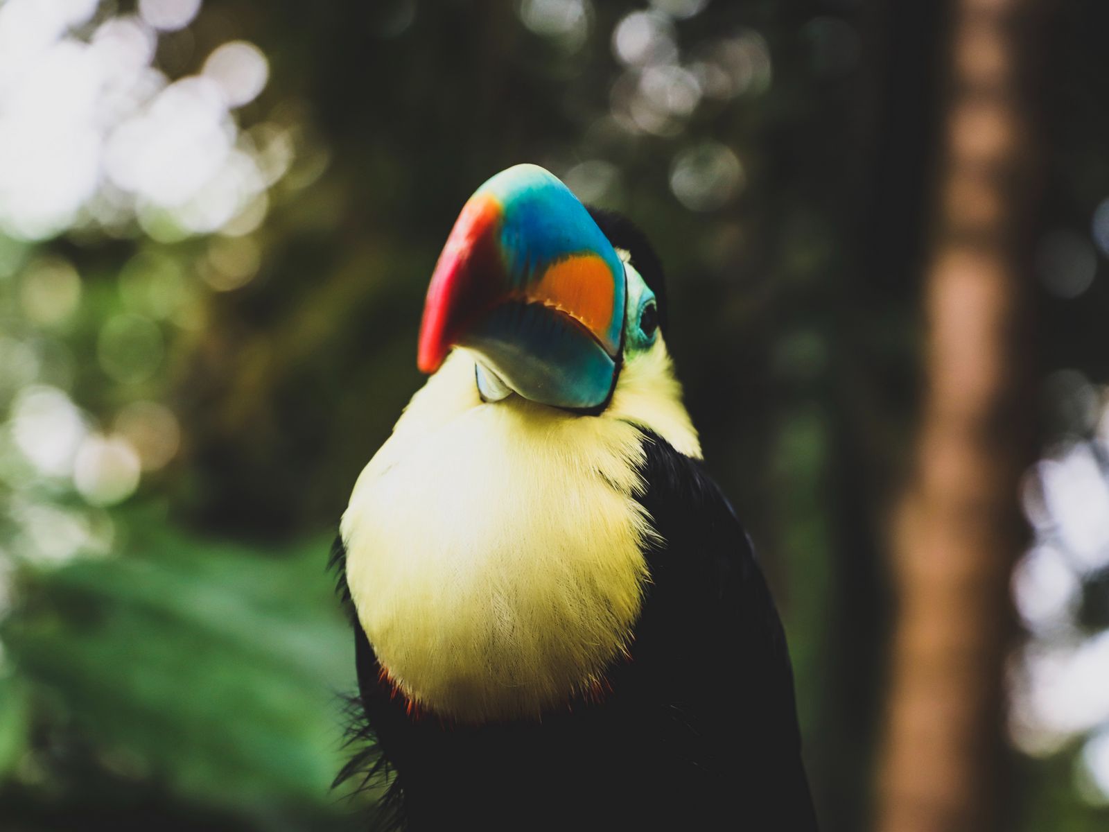 Download 1600x1200 toucan, bird, beak, blur wallpaper, background standard 4:3