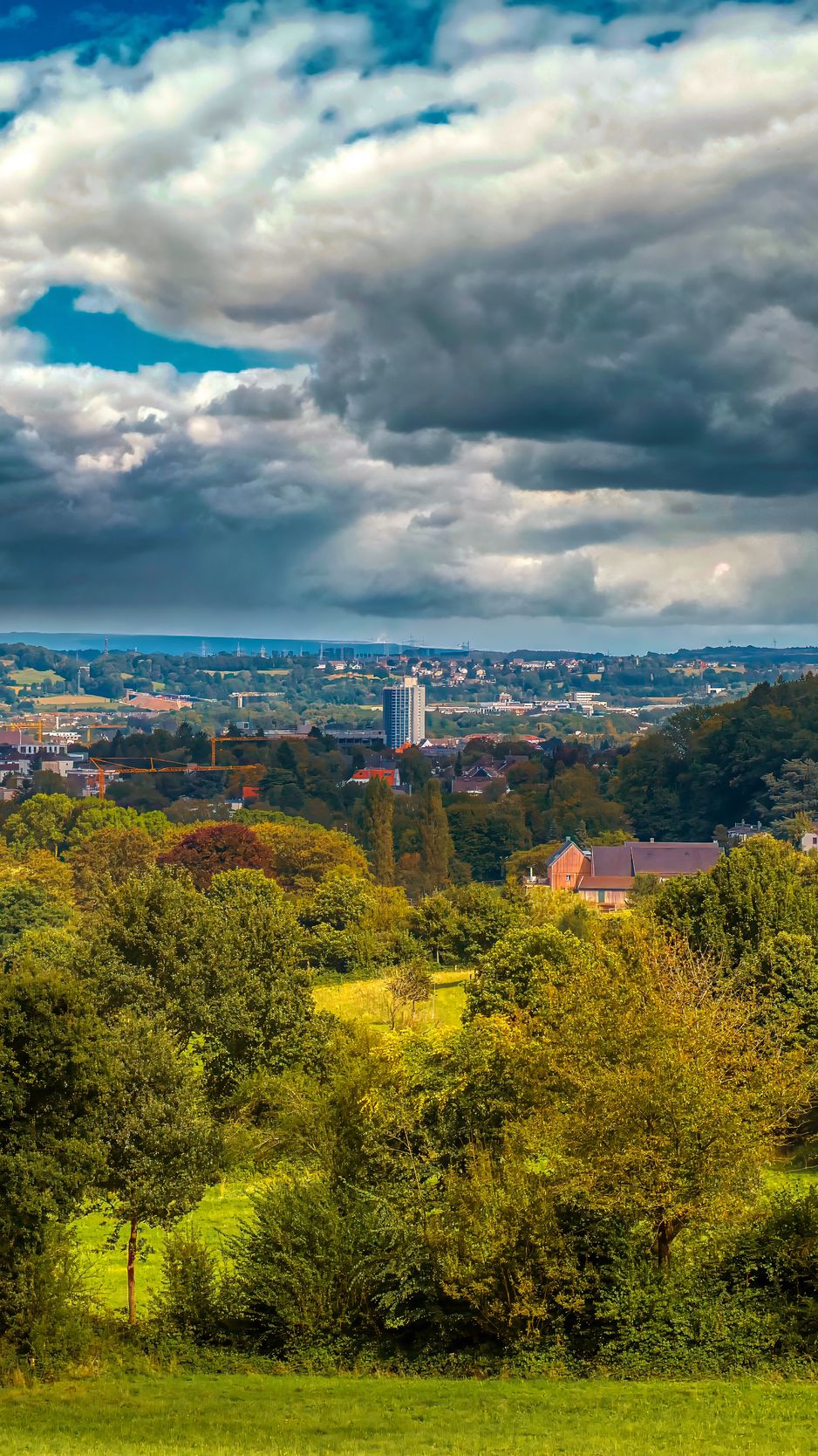 Download 938x1668 trees, clouds, sky, city, tower wallpaper, background iphone 8/7/6s/6 for parallax