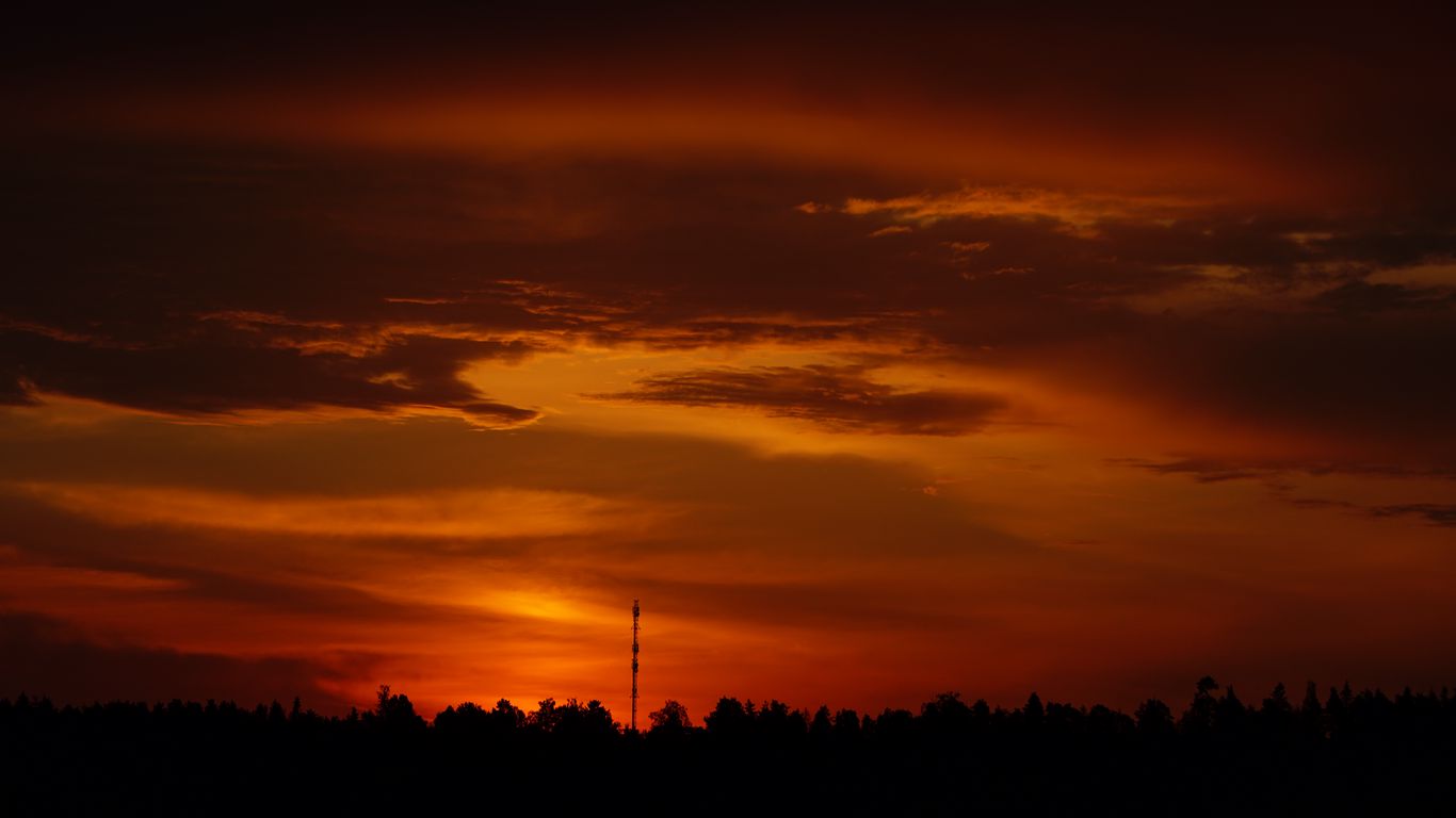 Download 1366x768 trees, silhouette, shadows, clouds, sunset, dark, landscape wallpaper, background tablet, laptop