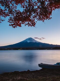 Download 240x320 volcano, mountain, lake, tree, autumn wallpaper, background old mobile, cell phone, smartphone