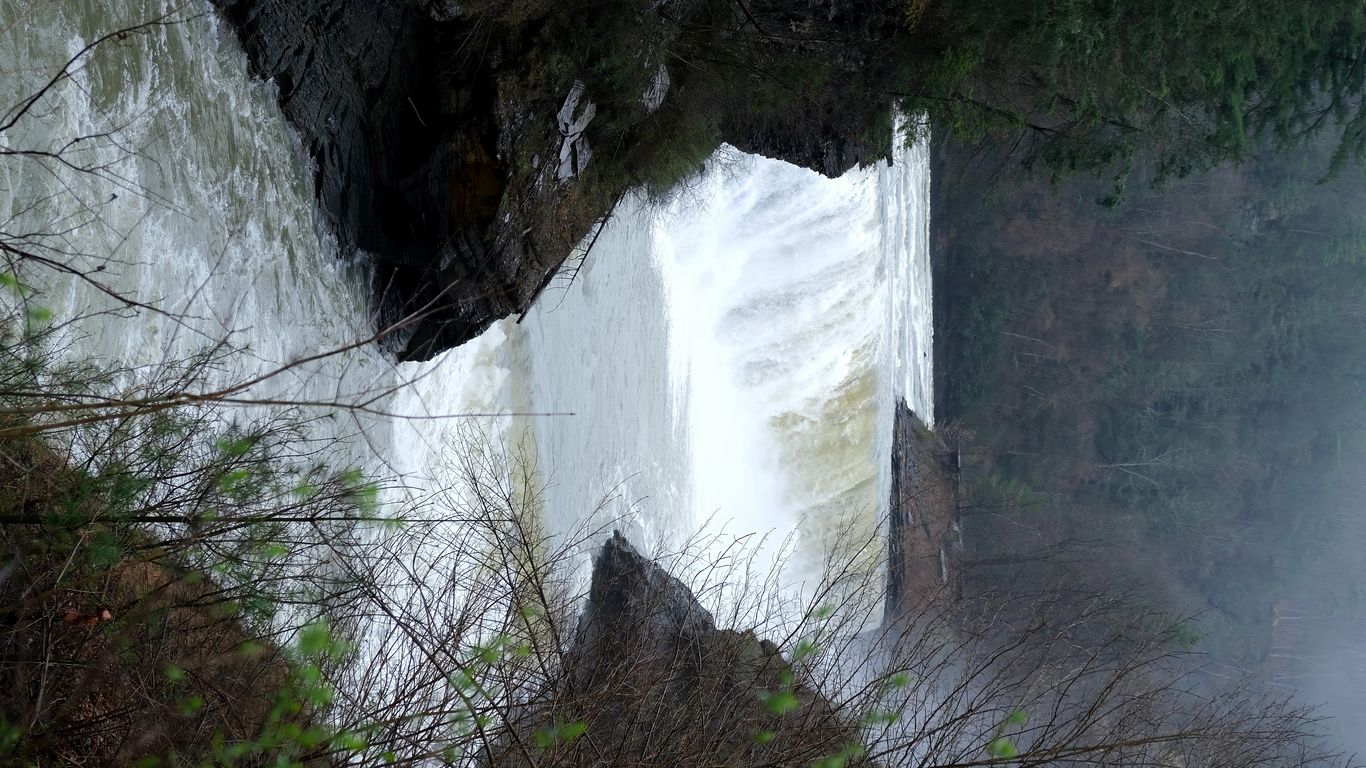 Download 1366x768 waterfall, river, landscape, nature wallpaper, background tablet, laptop